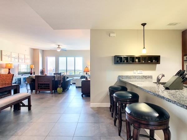 This executive retreat is a split floor plan featuring 2 suites 2.5 bathrooms, laundry room, 10 foot ceilings, large balcony, and 1755 square feet of living space all surrounded by magnificent views of the city. The gourmet kitchen features steel appliances, granite counter tops, European Style wood cabinets with under counter lighting, pantry, breakfast bar. The first suite features a generous space with loads of natural light, built in closet, and large windows that open to enjoy that lake view. The master bathroom is distinguished with a Jacuzzi soaker tub, separate shower tiled in marble with glass enclosure., and dual vanity with loads of storage with drawers. The second suite is on the other side of the residence featuring a walk in closet, generous space, and private bathroom as well. Schedule your private showing today, and welcome home.