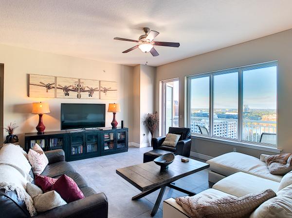 100 S Eola Drive features a upscale collection of 173 private residence in the heart of South Eola, just steps from downtown and Thornton Park. This exclusive high-rise soars 18 stories above and your private Sanctuary is located on the 16th floor; with breathtaking views of Lake Eola, downtown Orlando, and the skyline. Upon entering the building notice the elegant charm of the lobby with its dark wood paneling, baby grand piano, and crystal chandelier as you are greeted by the concierge. The Sanctuary not only has 24 hour security, but provides its residence with resort style amenities located on the 5th floor. The building amenities include heated pool and spa, Sanctuary lounge, and fitness center all professionally managed by First Services Residential.